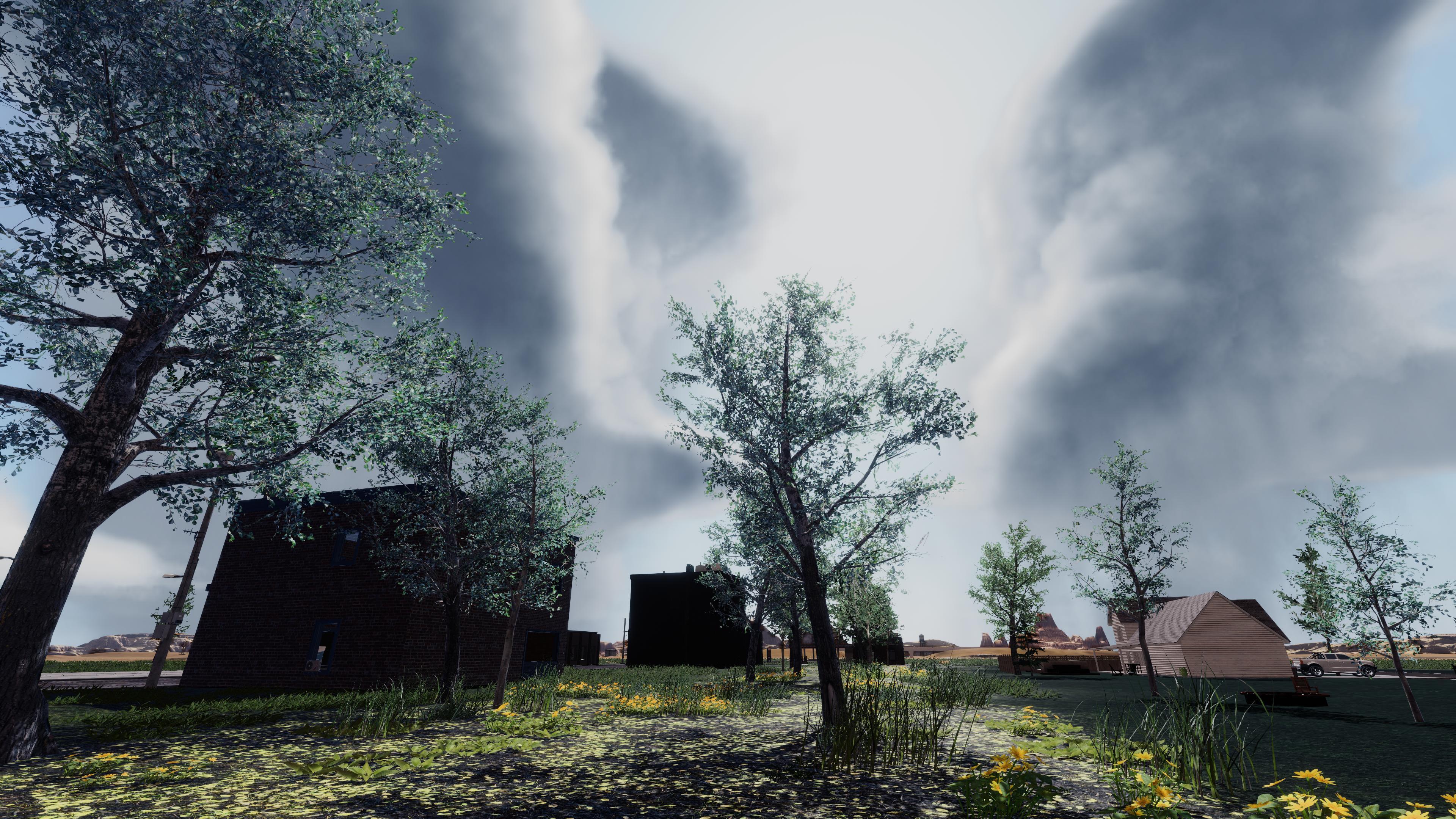 With the progress made on the clouds and performances by our VFX team, they are now ready to start working on upgrading our tornado technology to bring bigger and more realistic tornadoes to OUTBRK. On the vegetation update side, we keep progressing on technical tasks to accelerate the deployment of the new grass and trees while improving rendering performance. We also hired a freelance vegetation modeler to create the broken version of all those new trees to have a more realistic depiction of damaged vegetation after tornado damage. You can follow our progress on all our tasks here: https://trello.com/b/nsBmMfIa/outbrk-game