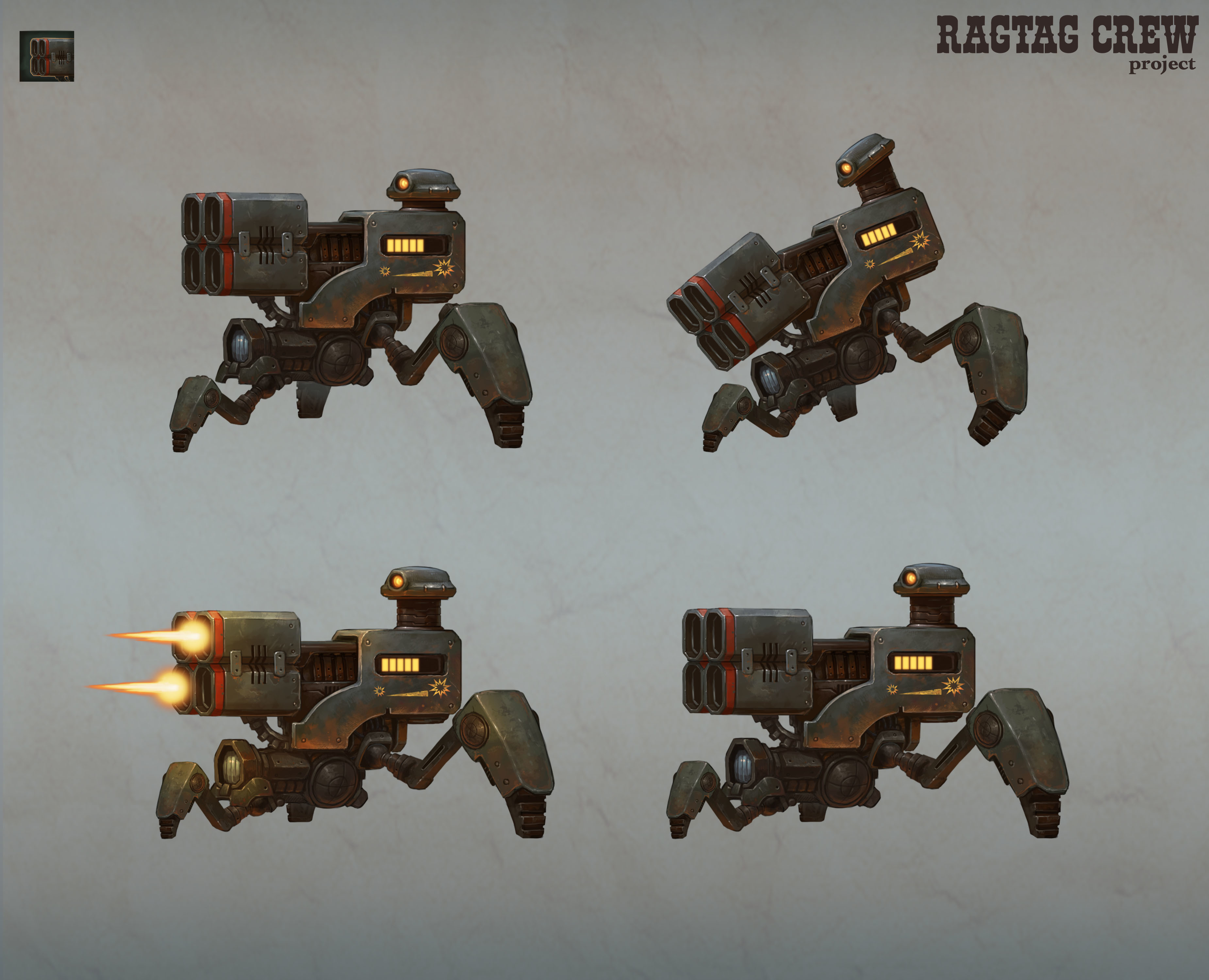 Today we’re going to take a look at far lands of the east. These cursed plains are no place for human life, only ruins. And ruins have guardians - steel machines always watching for marauders like you. Every robot is built to fight in a group and has a specific role in the team. Fire Support Unit is no exception. Let’s take a closer look: