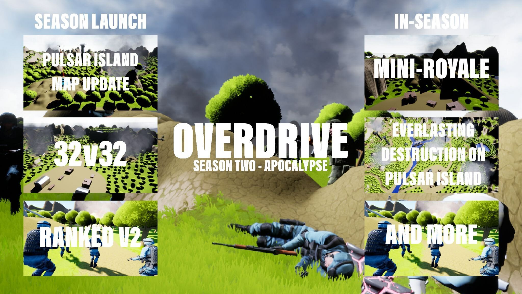 Overdrive Season 2 - Apocalypse is the biggest seasonal launch Overdrive has received yet and this is just a taste of what's coming. From the apocalyptic Pulsar Island map update to the all-new 32v32 Assault mode, the Apocalypse has it all.