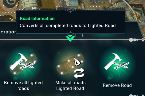 You can convert all completed roads to Lighted Road if you click this button from the buildings menu roads section.
