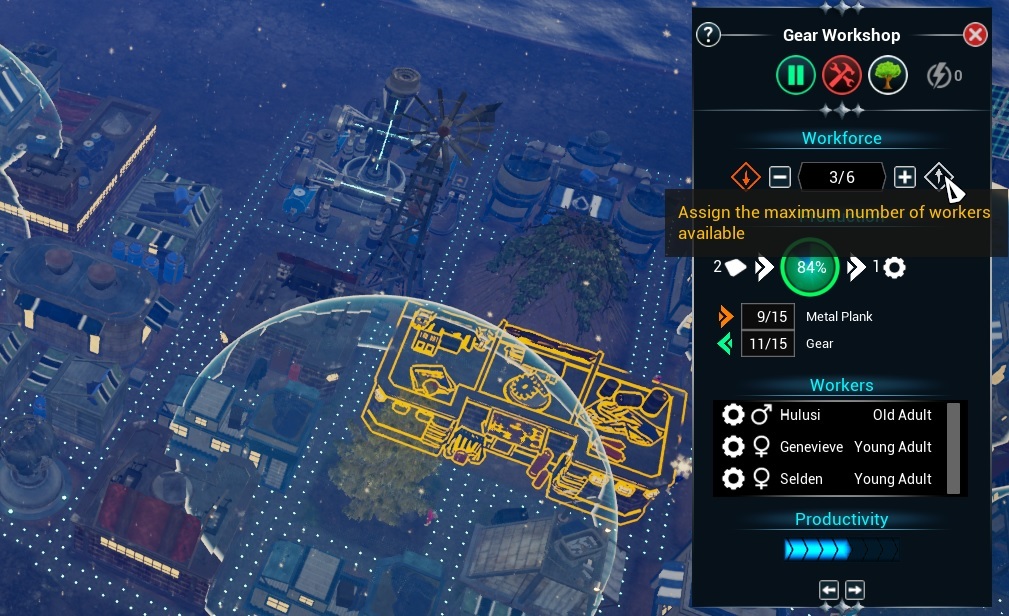 There are 2 new buttons on building widgets “to assign the maximum number of workers available” and "click to set to zero".
