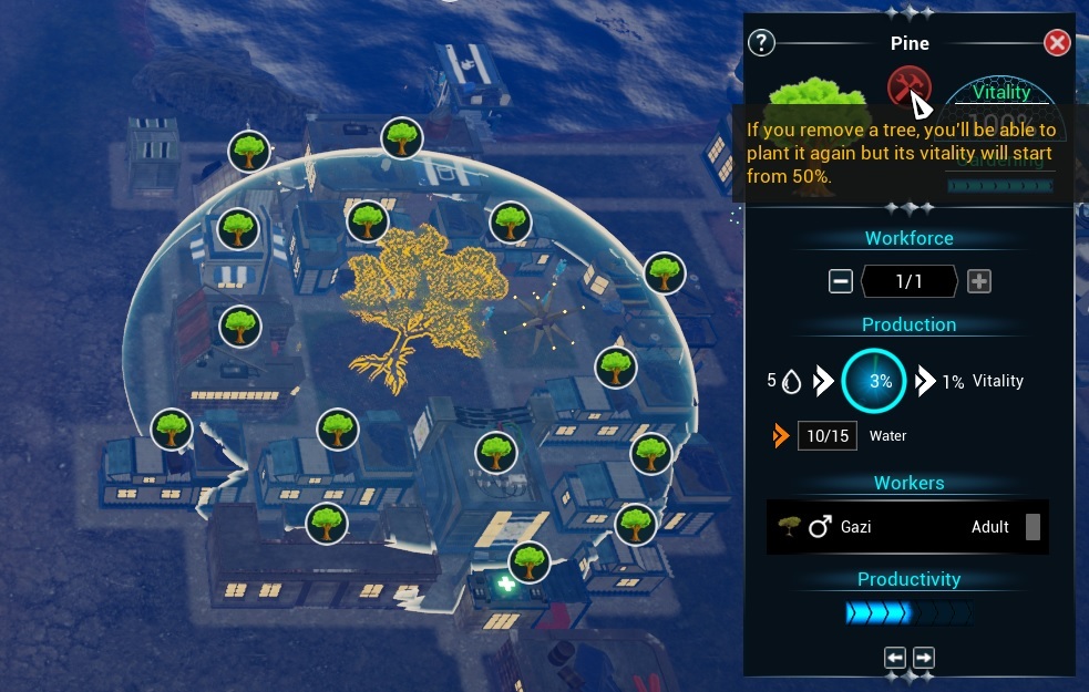 Now it’s possible to change a tree’s location. If you remove a tree, you'll be able to plant it again, but its vitality will start from 50%.
