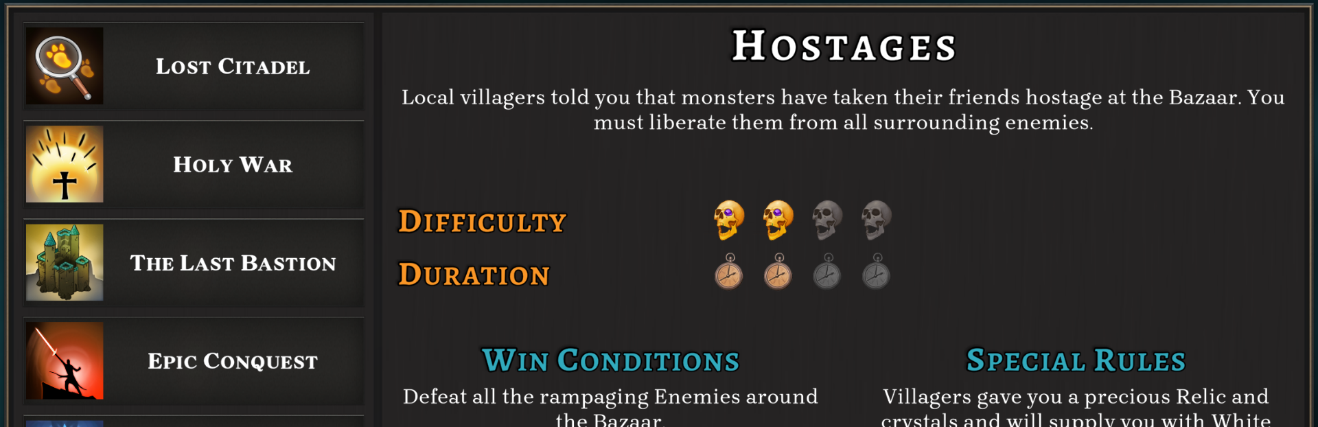 Liberate the Bazaar that has been taken hostage. You can download the new scenario from within the game Mods options.