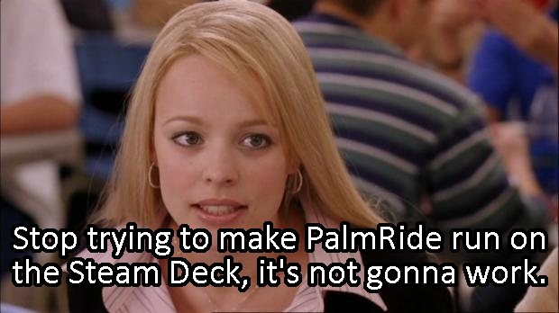 So yeah, enjoy PalmRide on the Steam Deck and any other Linux device. :)