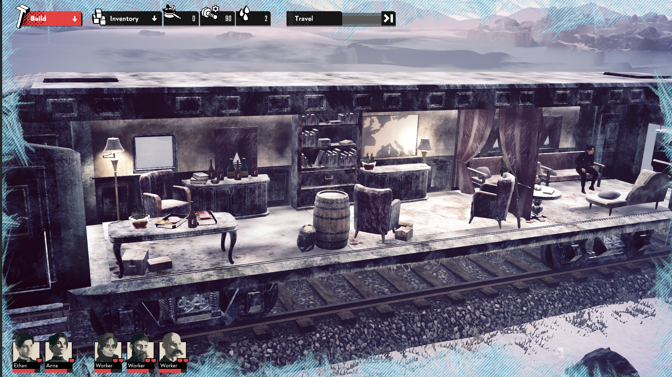 Unfortunately, our crew doesn’t the opportunity for a long rest, and the plague is giving them a hard time. Once the infection sneaks into your train, take care of your crew and get rid of it! The question of how to do this will be answered by Ela as soon as you pass the first biome ;)