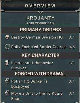To help with the historical reality of the immense difficulty the Polish forces faced in September of 1939, we have a new sort of objective, the Forced Withdrawal objective.
