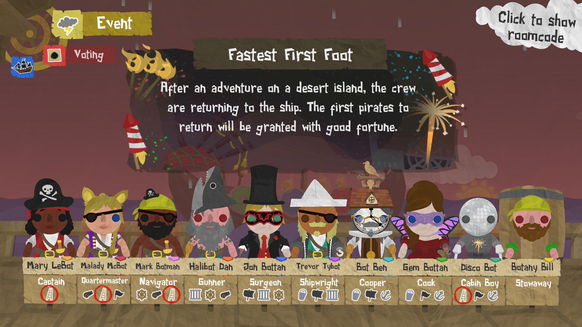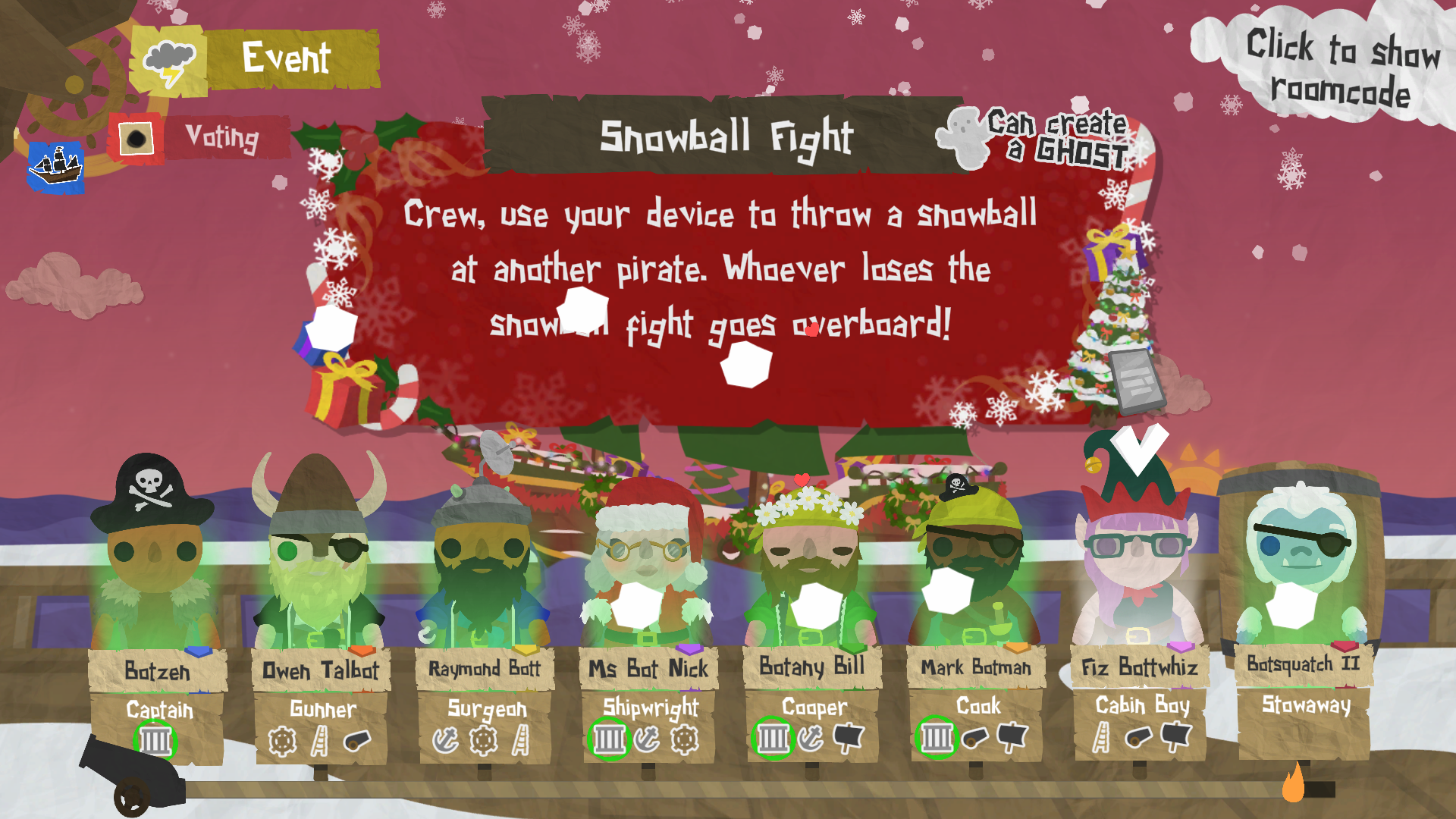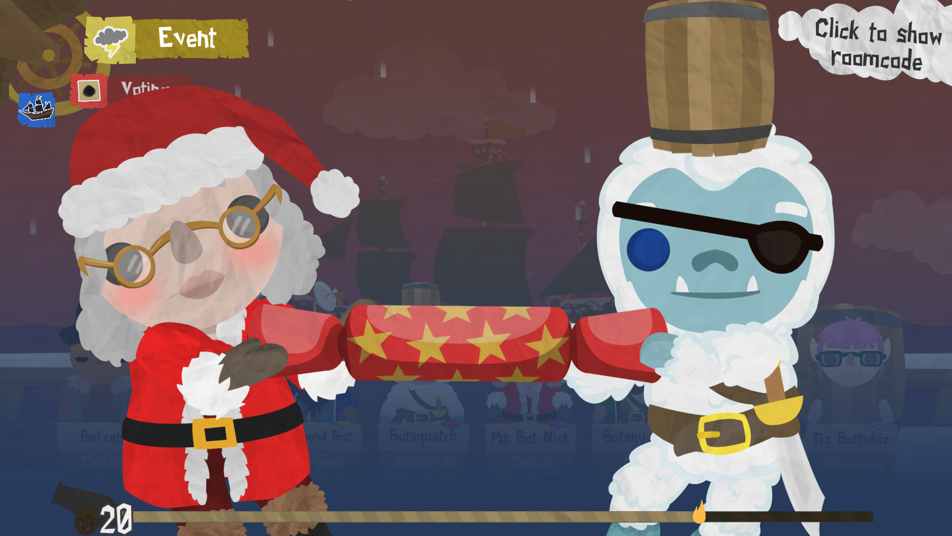 Invite bots into your game during Soggy Hogmanay, and you may find some of the regular crew replaced with special New Year’s revellers, out to help you ring in the new year! They’ll only join your games during Soggy Hogmanay, but these bots have their own personalities and appearances for you to enjoy.