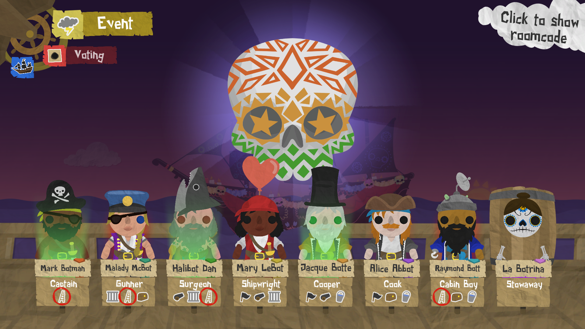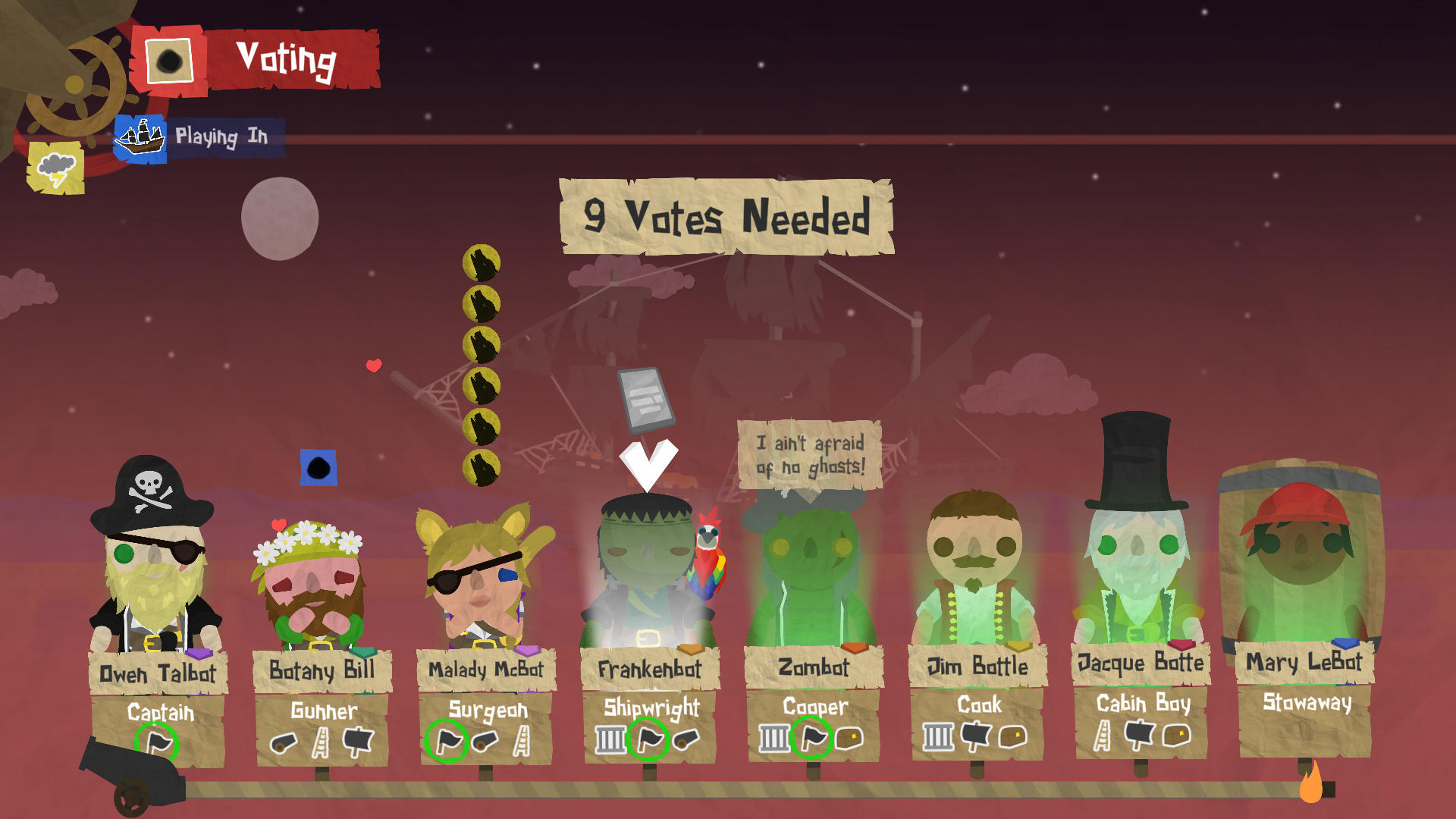 The Manipulator can use their power three times per voyage, and their power lasts until that player next votes, and also removes that pirate's option to pass their vote. The Manipulator could control of The Assassin to utilise them to nefarious means, take control of a mid-ship ghost engine, or force the Captain to vote for the Stowaway. The options are endless!