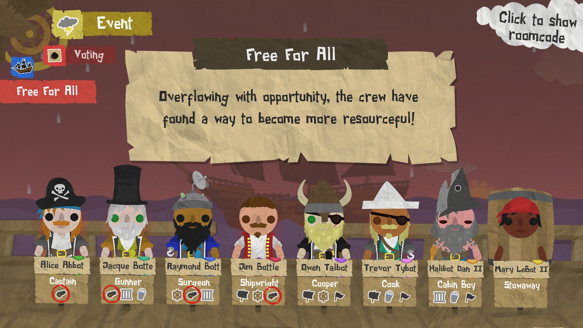 Whichever vow receives the most votes will immediately come into effect for the whole crew. Each vow will dramatically change the way voting works, which means this is a high stakes choice. There are six different vows, and whichever vow is chosen for your voyage is bound to make a difference.