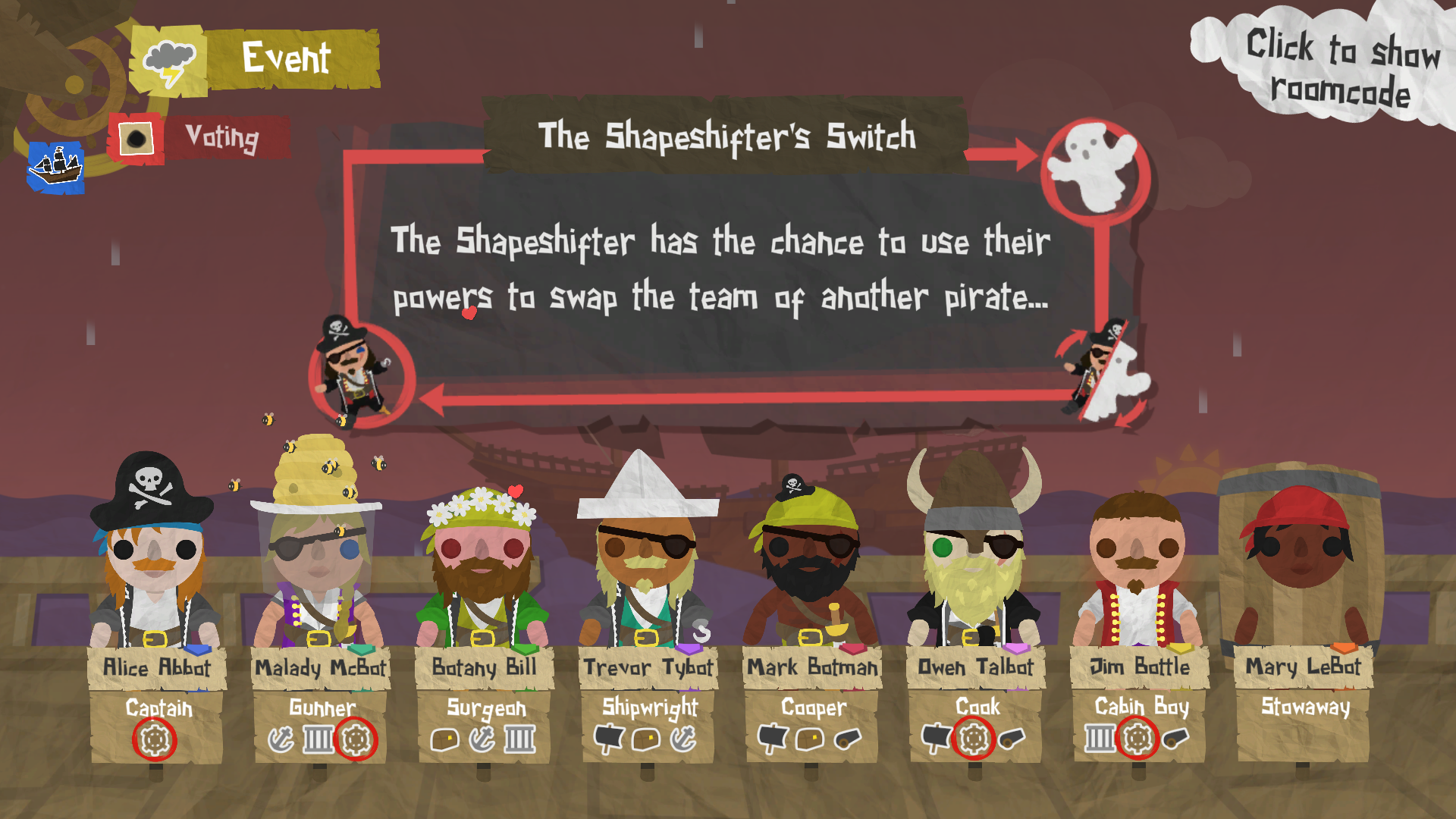 The Manipulator is a new active trait appearing in both Trait and Traits+ game modes. The Manipulator's powerful ability allows them to target a pirate on days when they don't play in and force them to vote for a specific pirate the next time they vote.