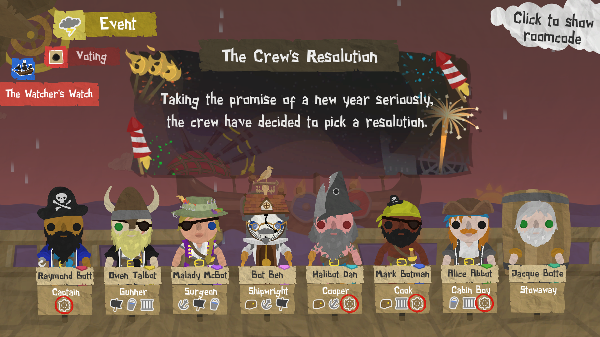 New for 2025, all voyages during Soggy Hogmanay will start with a brand new day one event: The Crew's Resolution. When presented with The Crew's Resolution, each crew member will have to vote on one of a small selection of vows that they want the whole crew to commit to for the remainder of the voyage.