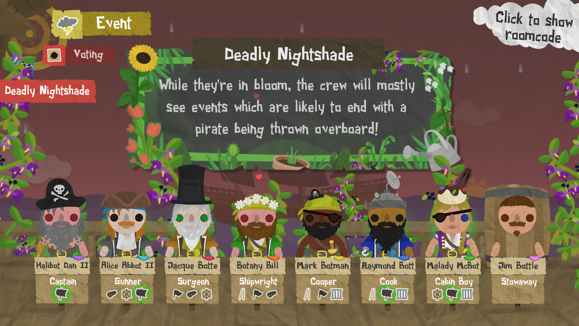 After a plant has been tended three times, it'll be fully grown, and will activate an ongoing effect that impacts the whole crew. From Saintly Sunflowers to Clingy Cacti, each plant is sure to turn the tide in the favour of one team or the either. Will The Gardener learn to work with their plants, or will they turn against them?