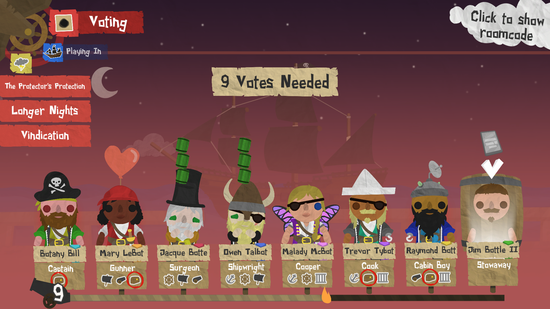 The Retaliator's Revenge: As The Retaliator, throw a pirate who voted for you overboard