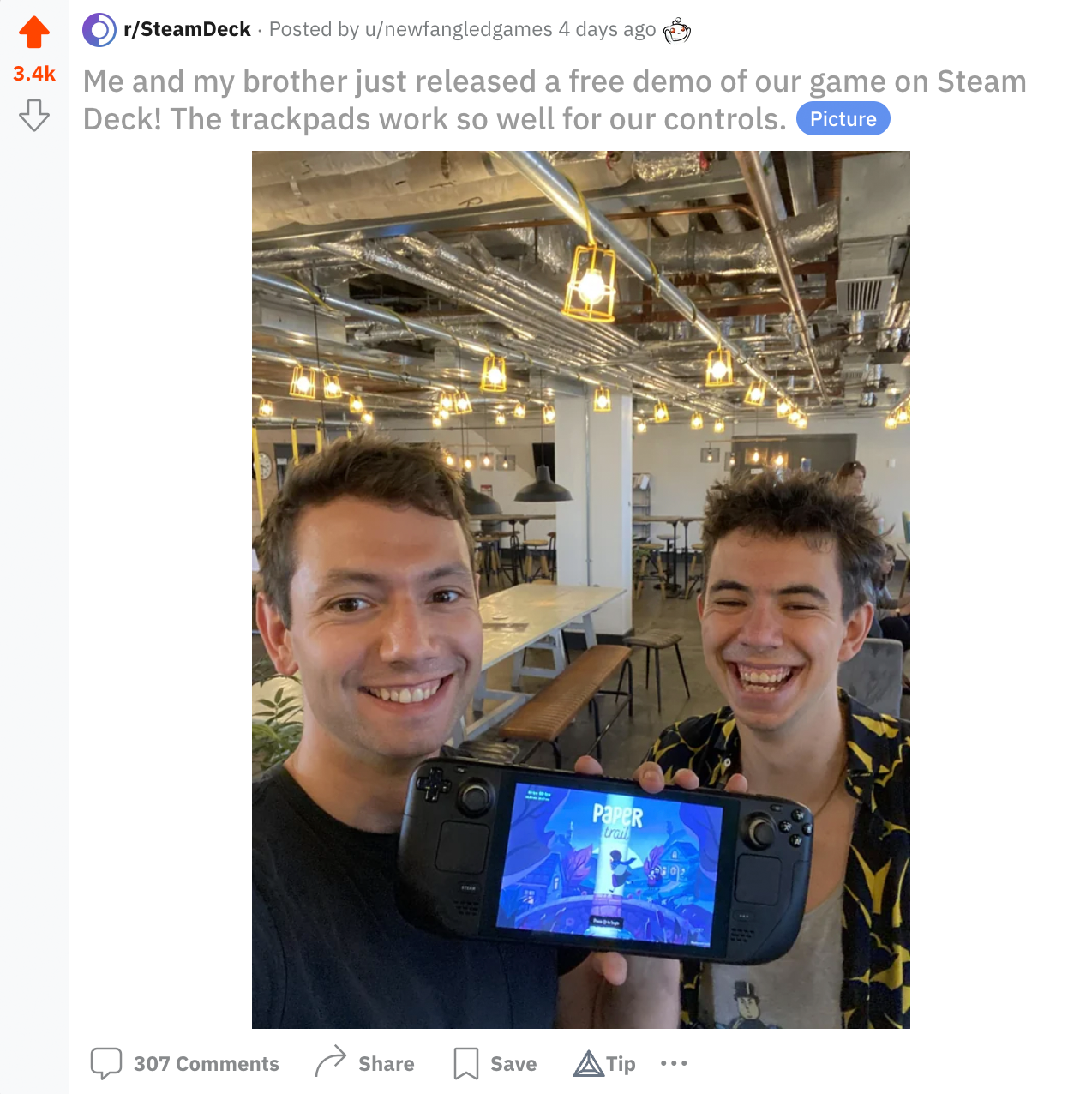 A big shoutout to the Reddit Steam Deck community who tipped us over the edge! All your encouraging comments and great feedback on the Steam Deck support has been overwhelming...