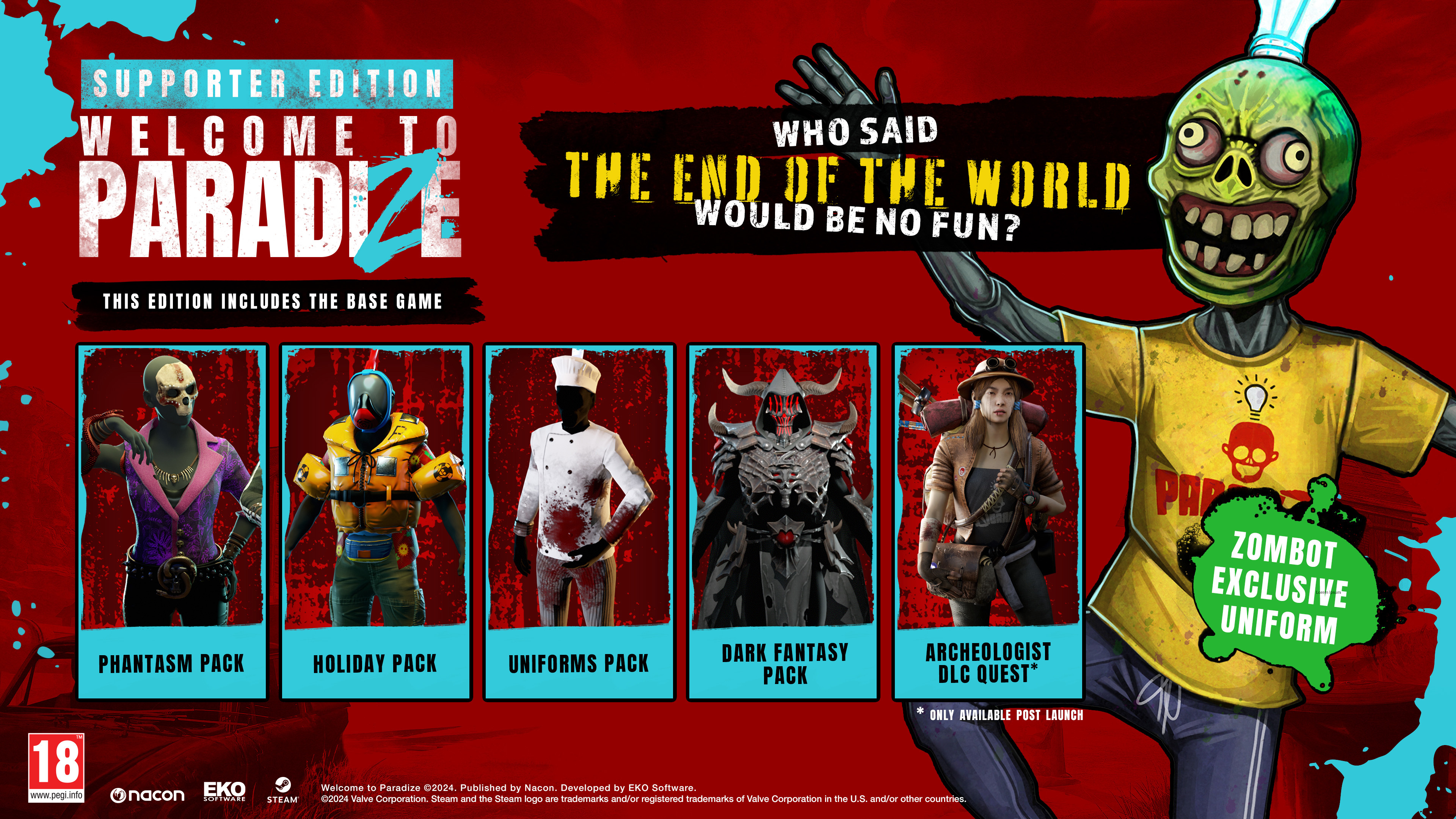 With the Zombot Edition, you will not only get access to “Welcome to ParadiZe” full game but also some cool cosmetic packs to make yourself and your zombots shiny & preppy. It includes not one, not two, not three but five cosmetics packs & an exclusive uniform!