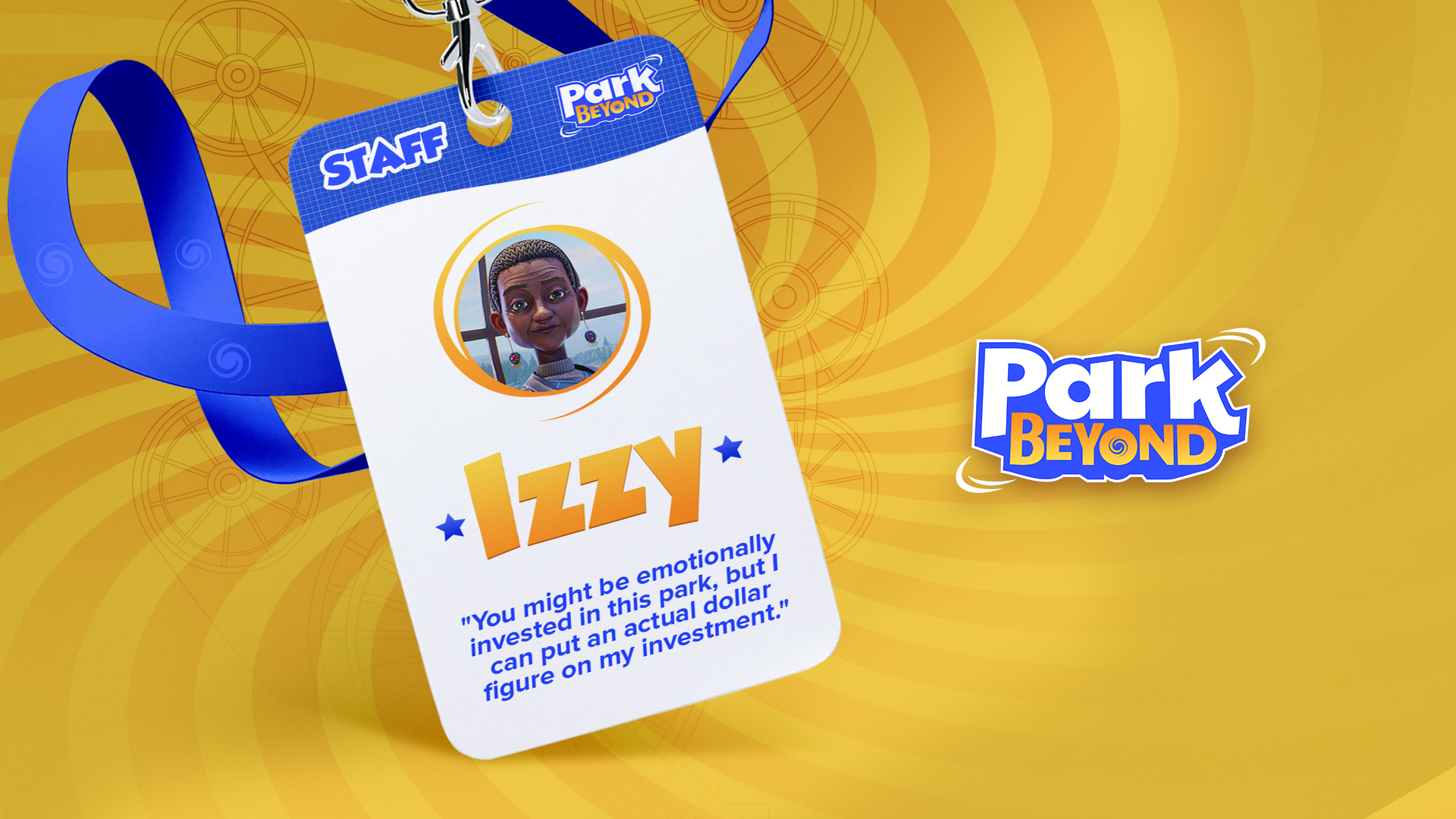 A lanyard and a staff badge from Park Beyond’s universe.