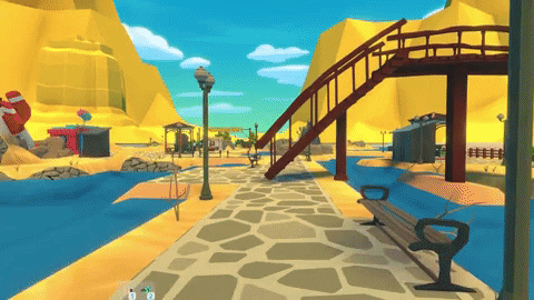 Jumping into first person mode allows me to try out the walkway and see the guests using my creation.