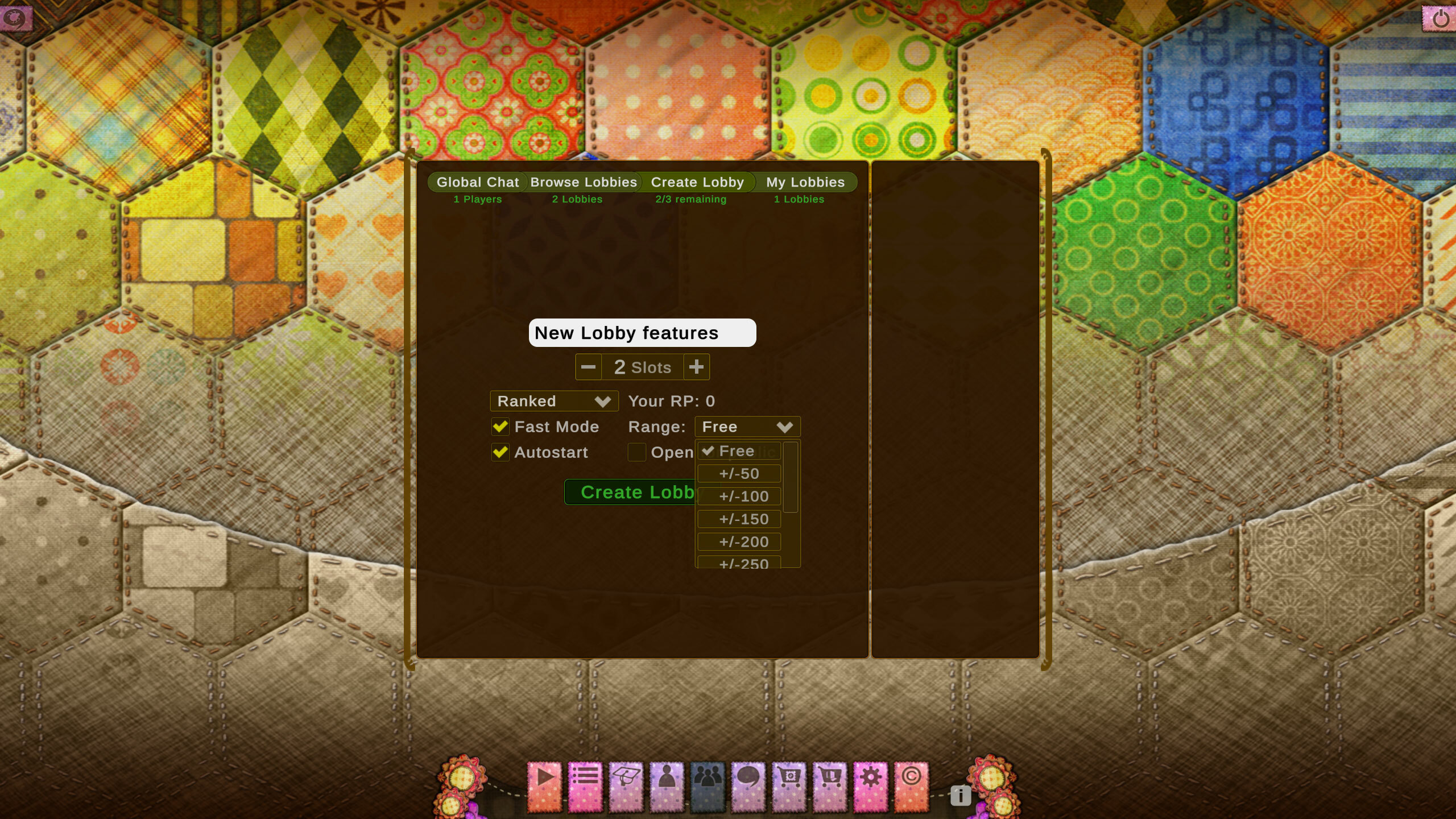 - Filter ( rebalanced tiles / lobbies with friends / ranked / casual / fast or regular time window )