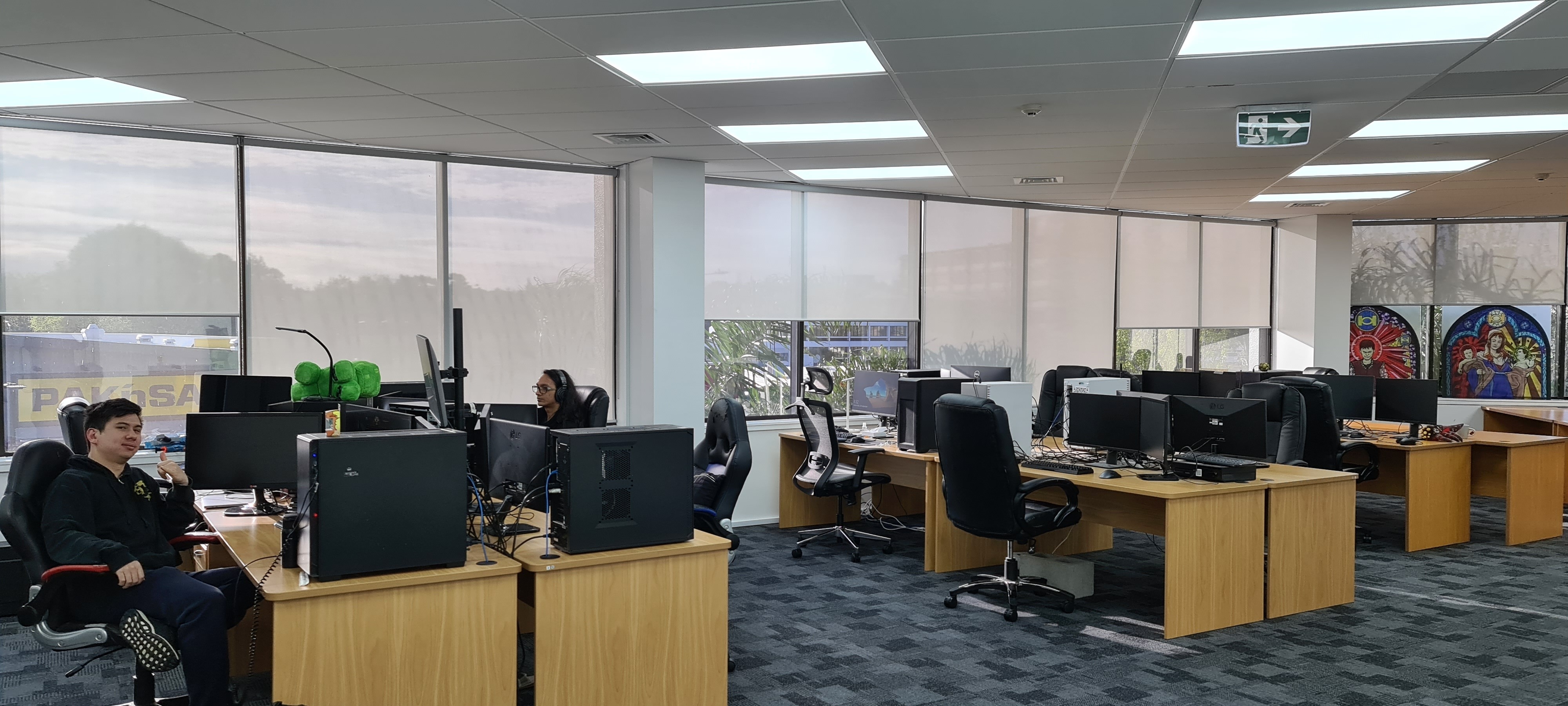 Grinding Gear Games has been growing and we've expanded into more of our office building. We're finally settled into our new space and wanted to share some photos with you. The new office space is on the top floor of the building and is home to our Audio team, UI team, and all of our Live Operations (System Administrators, Web Developers, Producers, QA and Community Team).