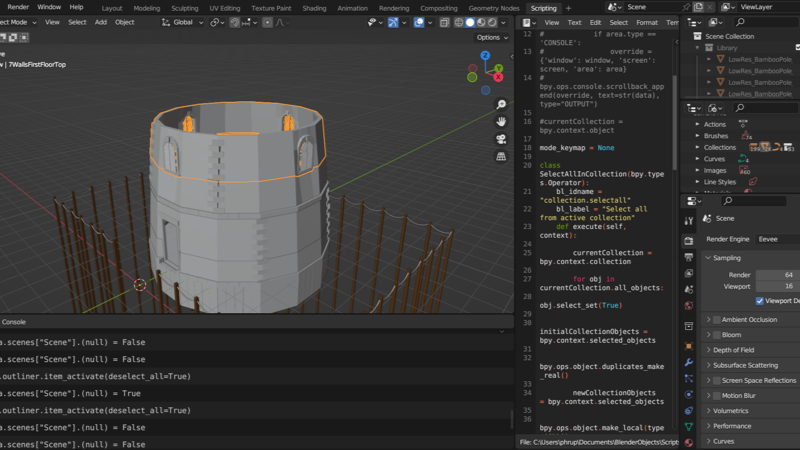 After the windmill took me about 4 hours to join together, I decided to try to automate this. Blender luckily allows for some automation scripts to be created with Python, and while Python isn’t my favourite language, I have enough experience with it to have gotten right into it. After a few hours, the result is now a simple shortcut that does the majority of the work for me. I simply select the relevant parts, and the script solves all of the issues, deletes remnants, and joins the parts together into one - usually within a few seconds. This means that I merely need to organise the parts into groups I want, and run the script a few times - having tried it on the windmill, it took the time to make the model game engine ready down to about 10 minutes.