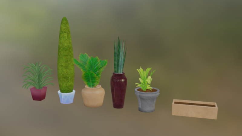 Last week, I managed to add some foliage to the new building models, which also needed some kitbashing to start with. We’ve had various pots and potted plants in the game for a while, but I had to get them into a clean file to work with, clean up their materials, etc, and added some new ones I could add as well. The potted plants in today’s image are an example of that, and there are quite a few more (such as vines) that aren’t pictured.