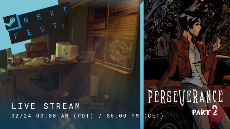 Play the new demo for Part 2 of Perseverance! Watch the stream on Thursday 24.02.2022, at 6 PM CET / 9 AM PDT, and play along or sit back and enjoy the show!