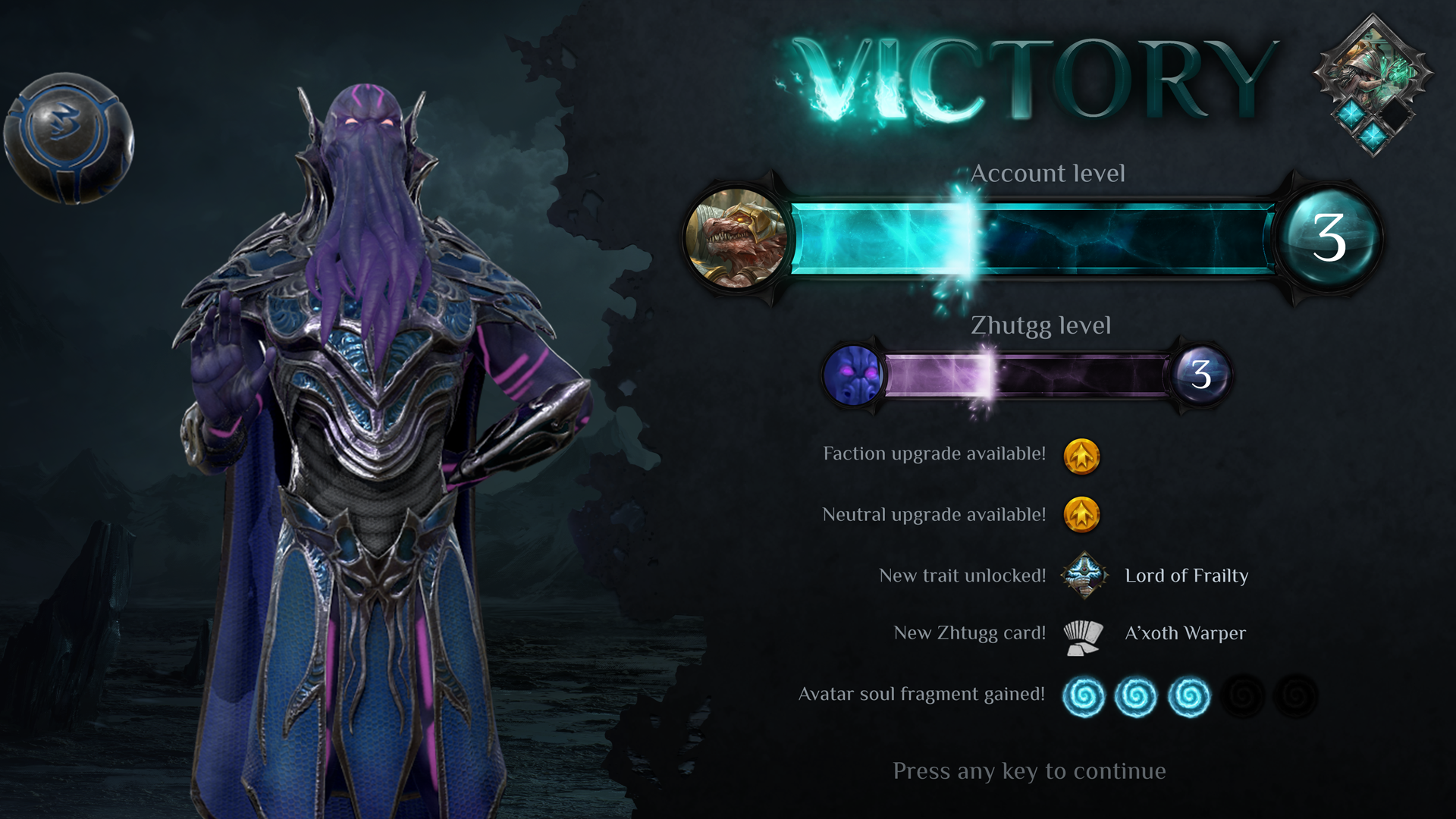Fancy a solo game or a battle with your Phageborn friend against two other opponents? The PvP shows you all the necessary info on your deck, your Avatar, your rank and your statistic with the specific Avatar and faction you are going to use. Choose wisely before entering the battlefields of Issilith!