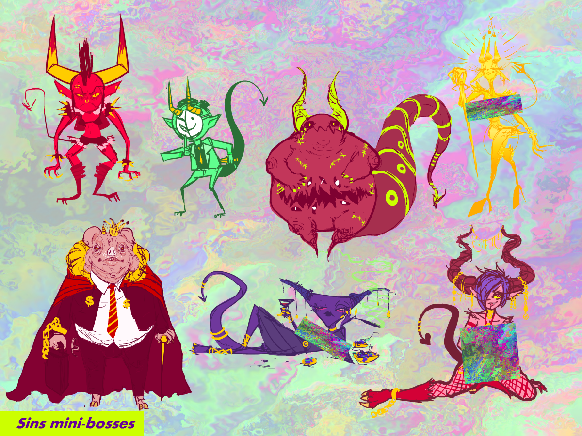 Mini-bosses: - added '7 deadly sins' during hell section, you will go up a building and on each