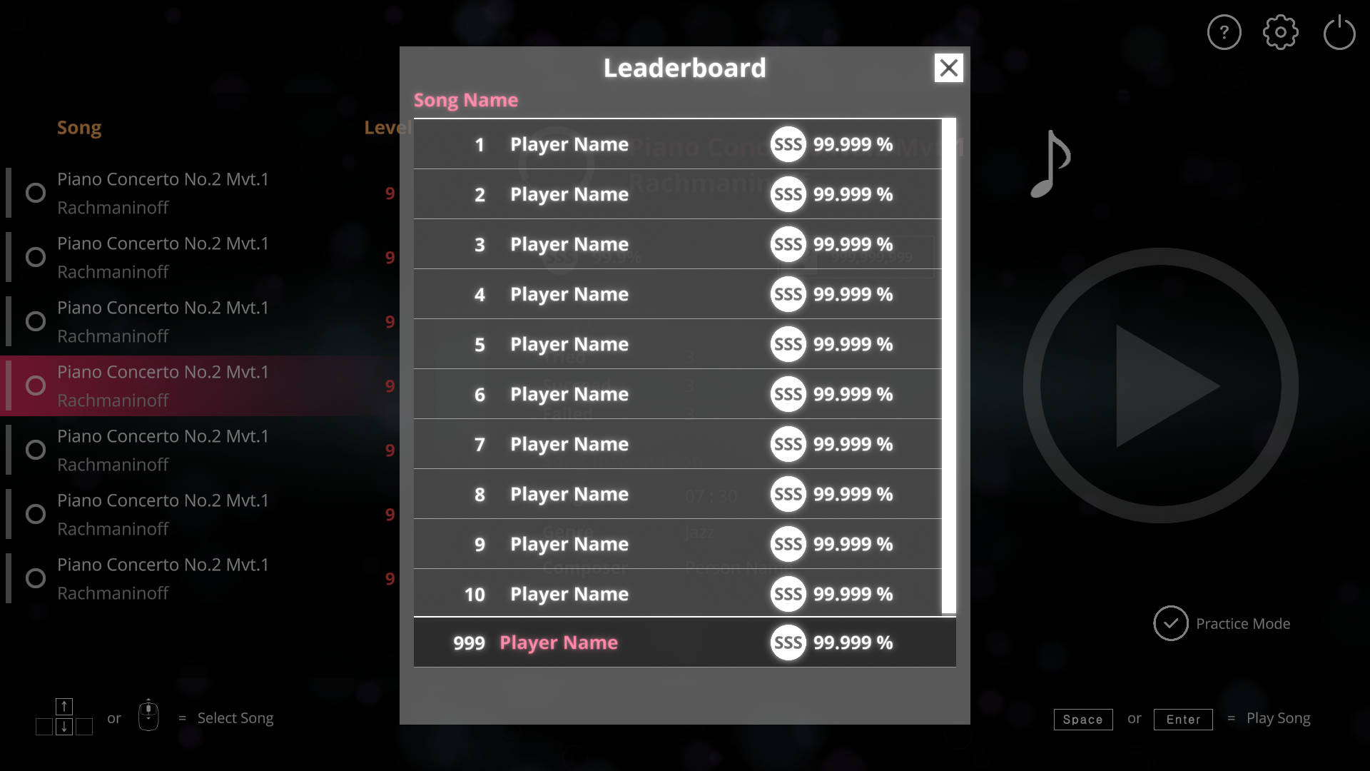 When you clear a song, your score will be uploaded to the Steam Leaderboard. You can check the ranking in the song information window. You must clear the song at least once after the update.