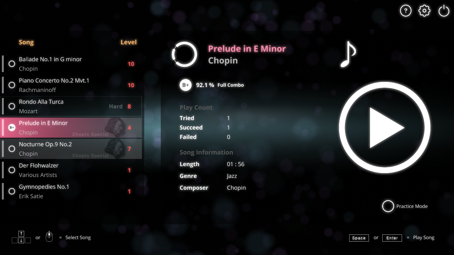Chopin's Norturne Op.9 No.2 and Prelude in E Minor has been added.