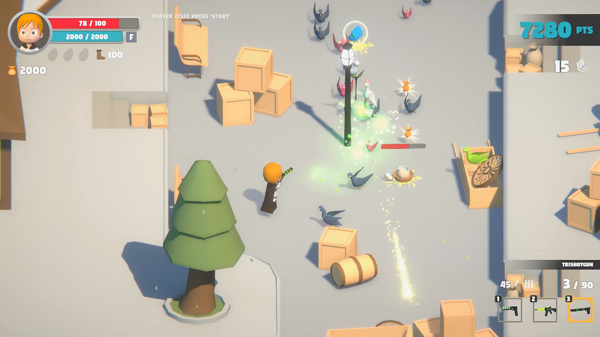 You can finally fight pigeons with all your friends or other players through the online multiplayer mode! It supports up to 4 players, no joystick required (but if you want, you can use it).