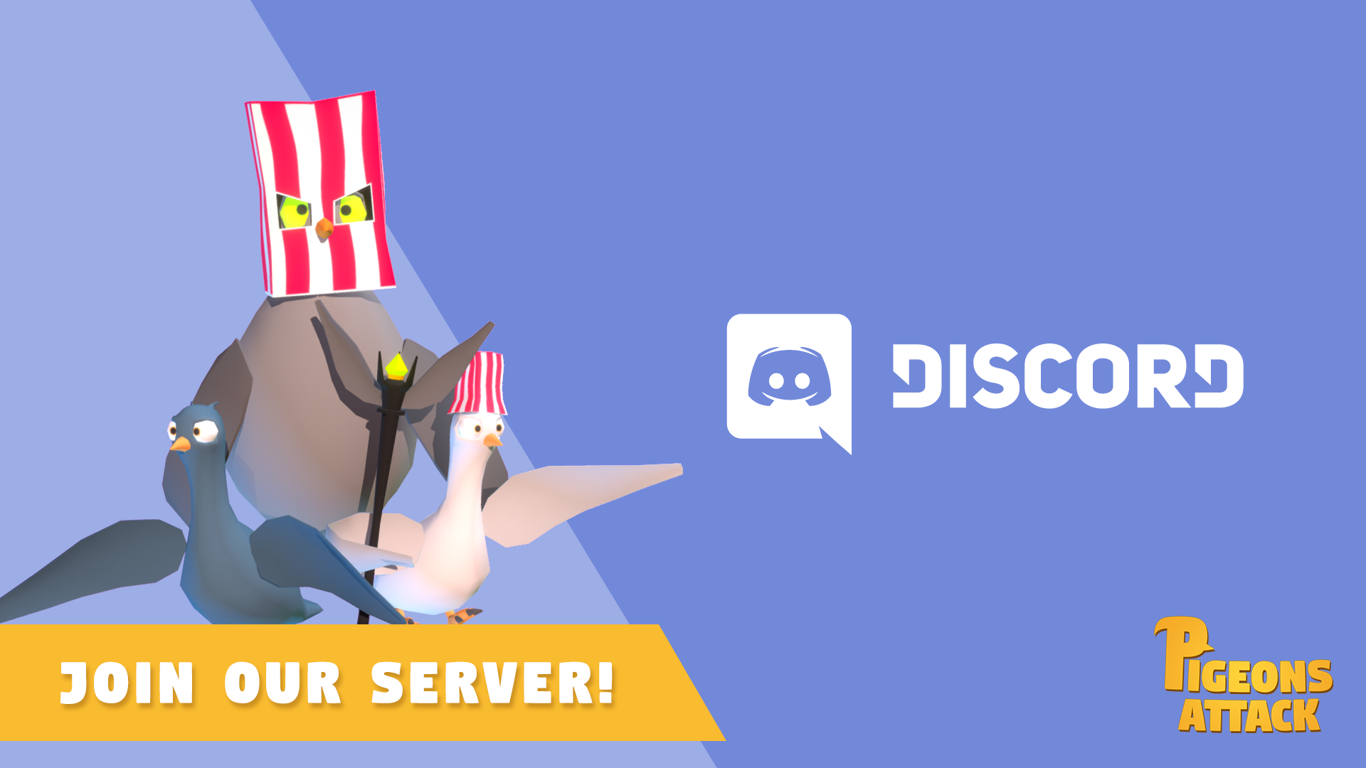 Pigeons Attack has a Discord server now! Join our server and find players to play with, talk about how incredible you are by surviving 30 rounds or just write pigeon noises in the chat. Pigeons are also welcome:
