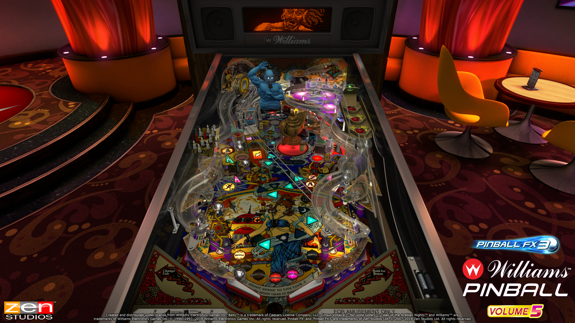 This stunning collection of three authentic Williams™ and Bally™ tables includes TALES OF THE ARABIAN NIGHTS™, CIRQUS VOLTAIRE™, and NO GOOD GOFERS™. All available to play both in their classic original form and as remastered tables with updated graphics, animated toys, and a host of new features.