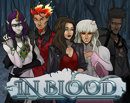 In Blood is a dark fantasy/horror/romance otome/visual novel game. Ellie (accidentally!!) makes a blood pact with an ancient god and ends up trapped in another dimension full of monsters. She must try to escape while staying alive and maintaining her humanity, can she find someone she can trust to help her?