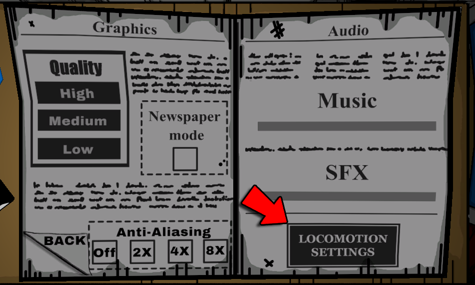 Where can I find this setting? Locomotion can be found via the new "Locomotion Settings" button within the newspaper settings page. Here you can choose to turn smooth locomotion on and off, pick smooth or snap turning, as well as the angle of your snap turn.