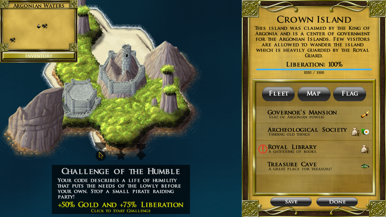 Also, please note that if you already started a file in Pirate Code, your ships will be given levels based on what chapter you are in. So if you are in the 4th chapter then all your ships will be at level 4. This will prevent you from being out gunned to start with.