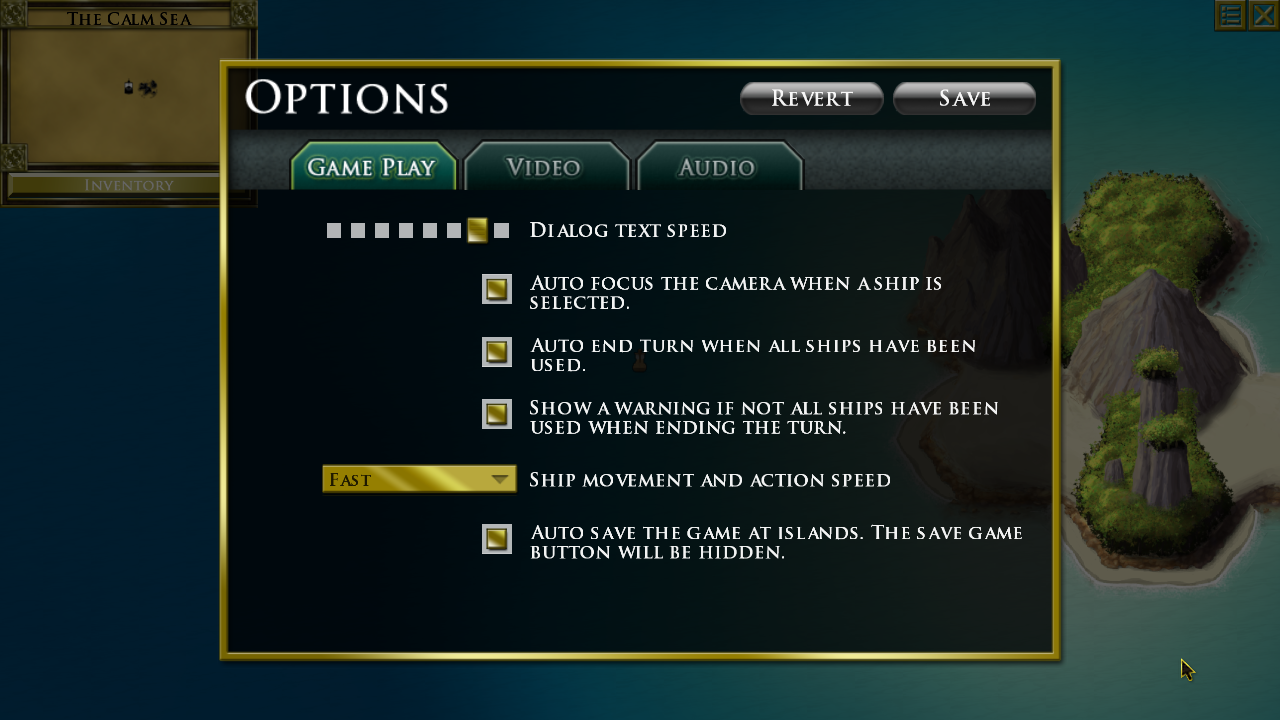 The game options now have three sections: Game Play, Video, and Audio. Let's work through what's available with the update.
