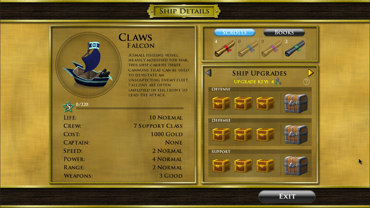 Ship Details screen allows player to unlock ship upgrades and now displays ship exp and level.