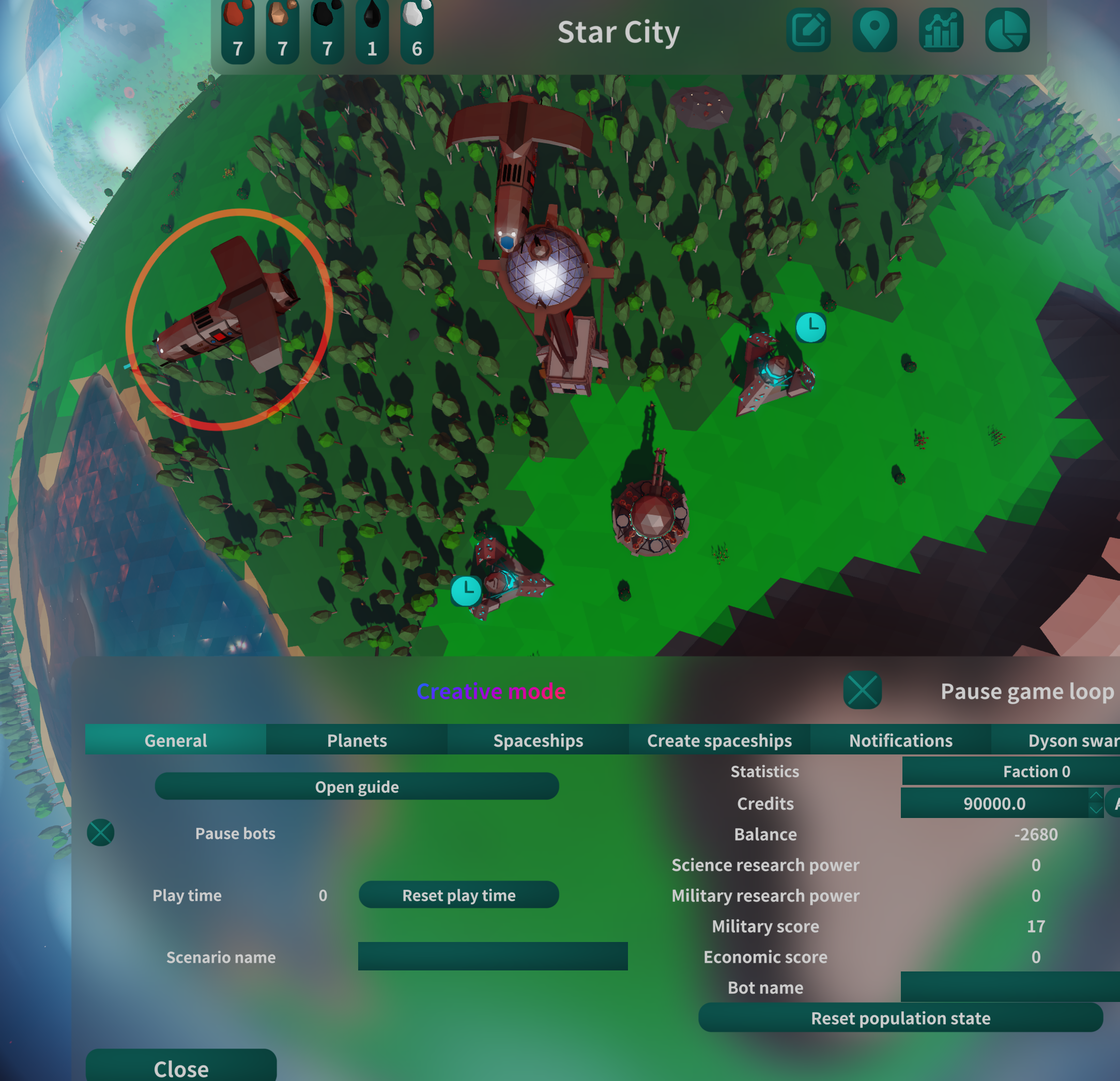 Update 1.2.0 also adds a Creative mode to Planet S. You can load existing savegames or create new savegames and modify the system without any resource or unlock restrictions. You can spawns ships, change item storage levels, adjust names or colony ownership and a lot more.