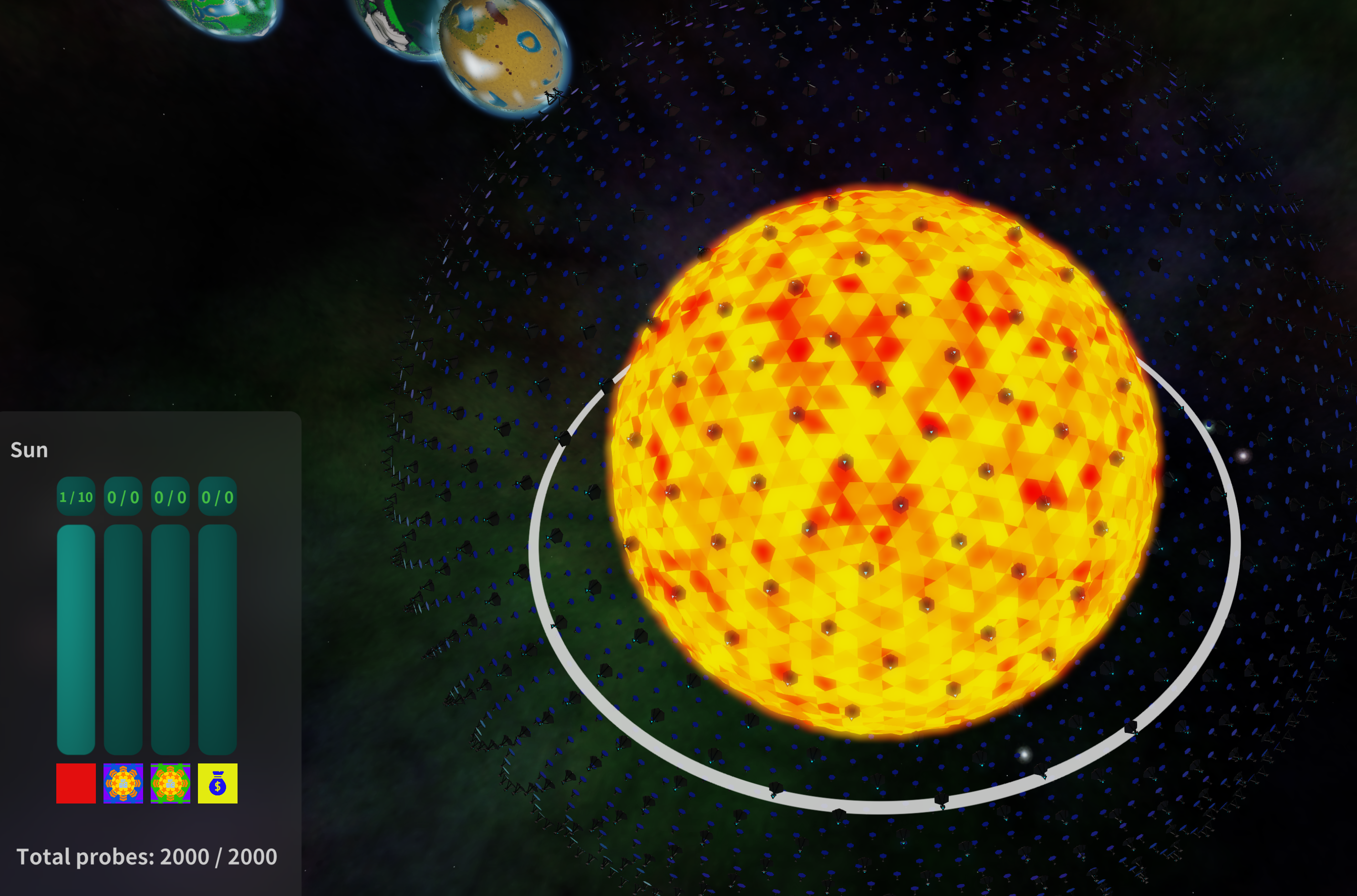 You can now research a new technology called "Dyson swarm" which will unlock a new building with which you can launch Dyson probes to build a Dyson Swarm. The Dyson swarm will not be an unlimited energy source for regular buildings but will instead grant you Warp gate capacity. More on that in the next section.