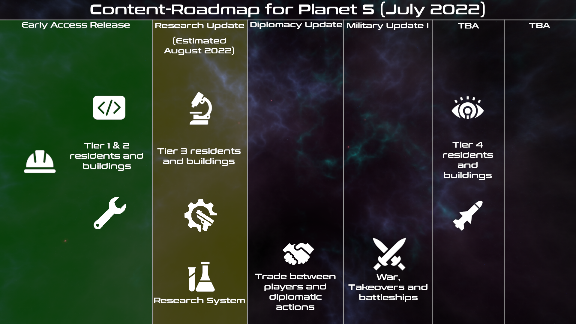 Besides the bugs and some of the QoL features we are currently mostly working on the big Research update. Its progressing very well and we are currently finishing up the research system. After that we will gradually add in all the remaining new buildings, do balancing and testing and then prepare for release. So the update is still very likely to be ready in August and we will talk more about it as we approach its release.
