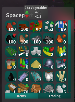 + The energy cost or production will now be displayed next to the energy balance of the colony while trying to build something (similar to the construction costs) + The Spaceport / Warehouse UI will now show a small symbol next to each item to indicate the production balance for that item type in the colony (A small green triangle if the colony produces more than it consumes and a red triangle if the consumption is higher than the production) + Added a tooltip to items in the Spaceport / Warehouse UI that will show you the exact production and consumption rates of that item type + Added a tooltip in the spaceship UI with a hint that you can discard items by shift + right clicking them ~ Tweaked the trade routes UI so that you can no longer create invalid trade routes by enforcing the item slot awareness when selecting which items to pick up or drop off