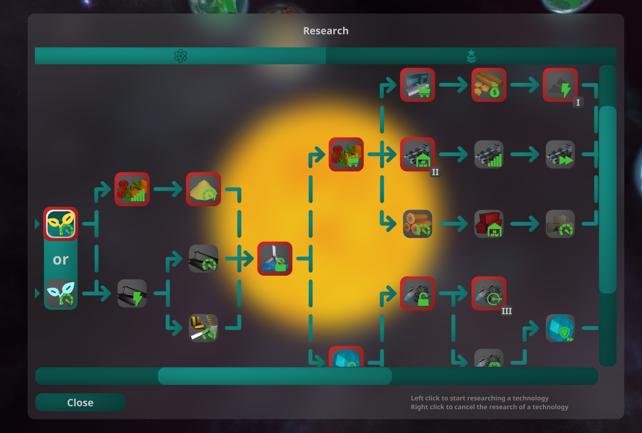 A research queue / Ability to select a technology to be researched and the system will automatically research each technology towards the target technology