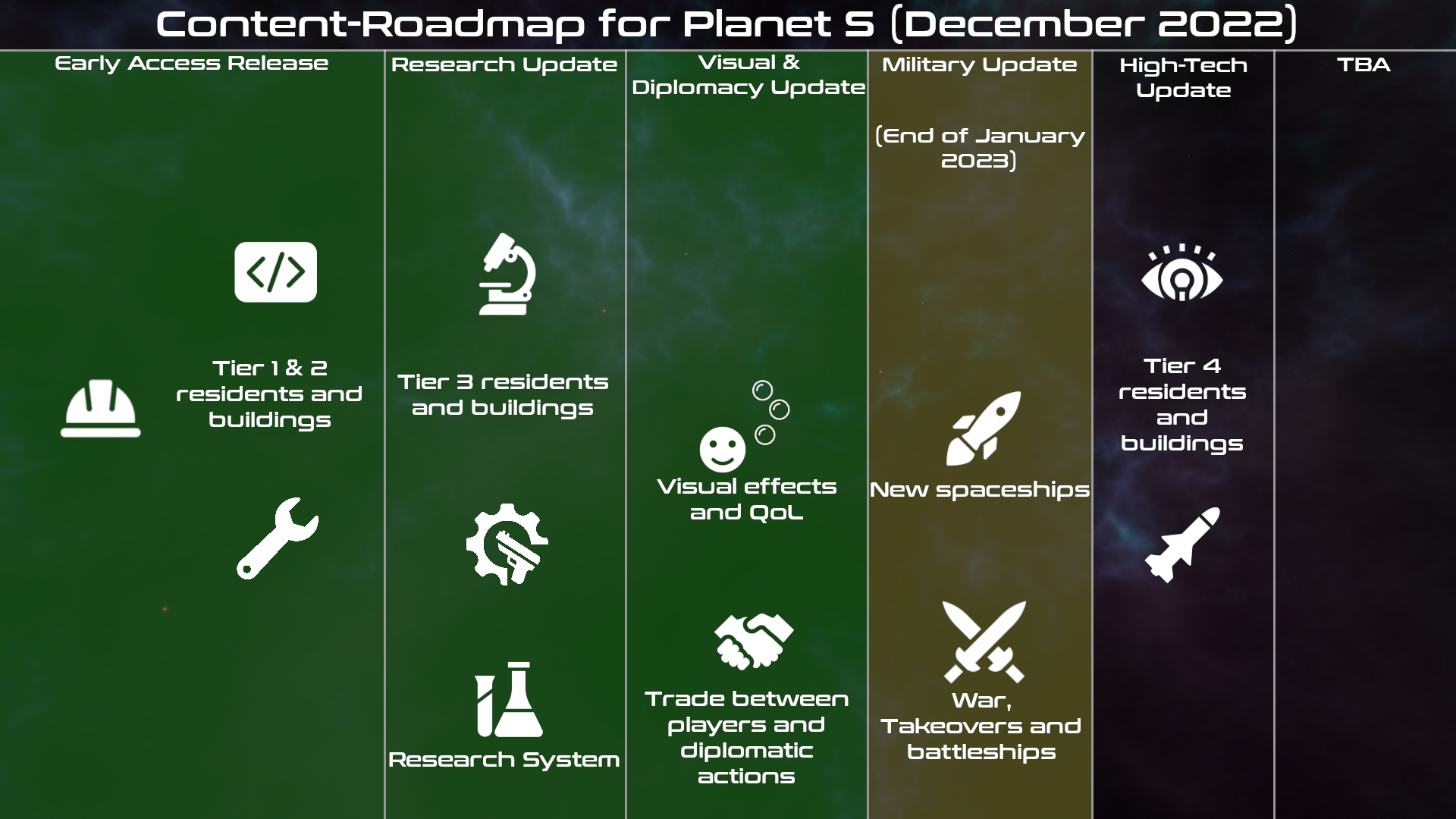 Welcome back and Happy New Year! This year will be a very exciting year for Planet S as we will try to reach version 1.0 in the first half of this year! We dont have a lot of new stuff to talk about but we do want to give you an update on the roadmap.