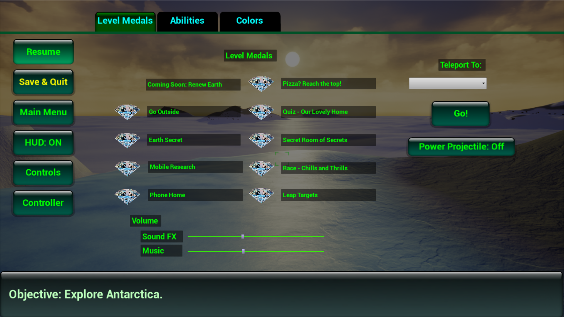 My plans for the near future are to keep adding missions to the existing worlds, add more super powers per suggestions (world teleport is already implemented), implement the leveling system, implement more game mechanics (e.g. multiple saves, screen resolution selection), fix bugs, and add new worlds for the outer solar system.