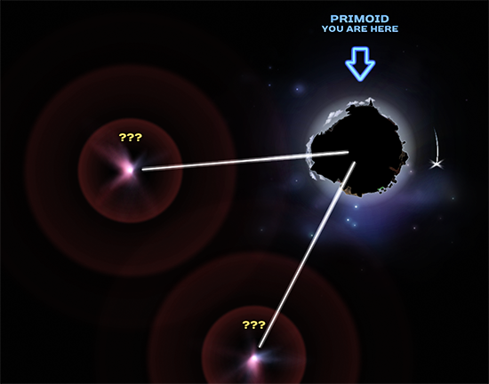 Objective system for Primoid using the zoomed-out Planetoid as a minimap