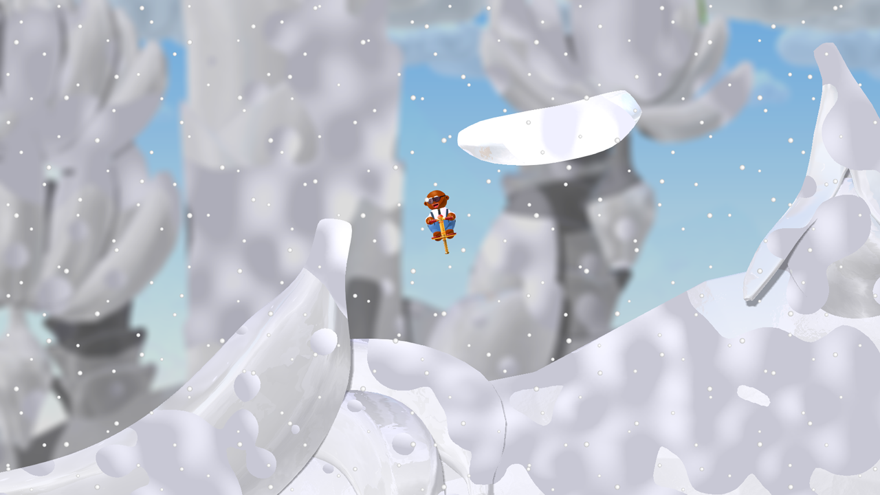 You wake up in a comfy bed, surrounded by considerate sunflowers and the calming sound of nature's serenity. A sudden urge to pogo overcomes you, and the only way to go is up. Climb your way up a mysterious 1000 meters deep chasm, overcome unprecedented obstacles and dangers and show the Monolith who's boss!