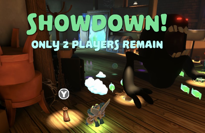The team has been busy beavering away fixing bugs, tweaking abilities and tightening up the graphics. We've also added the SHOWDOWN state which triggers when there are only two players remaining. Cue intense music, monster ROAR and turbo mode.