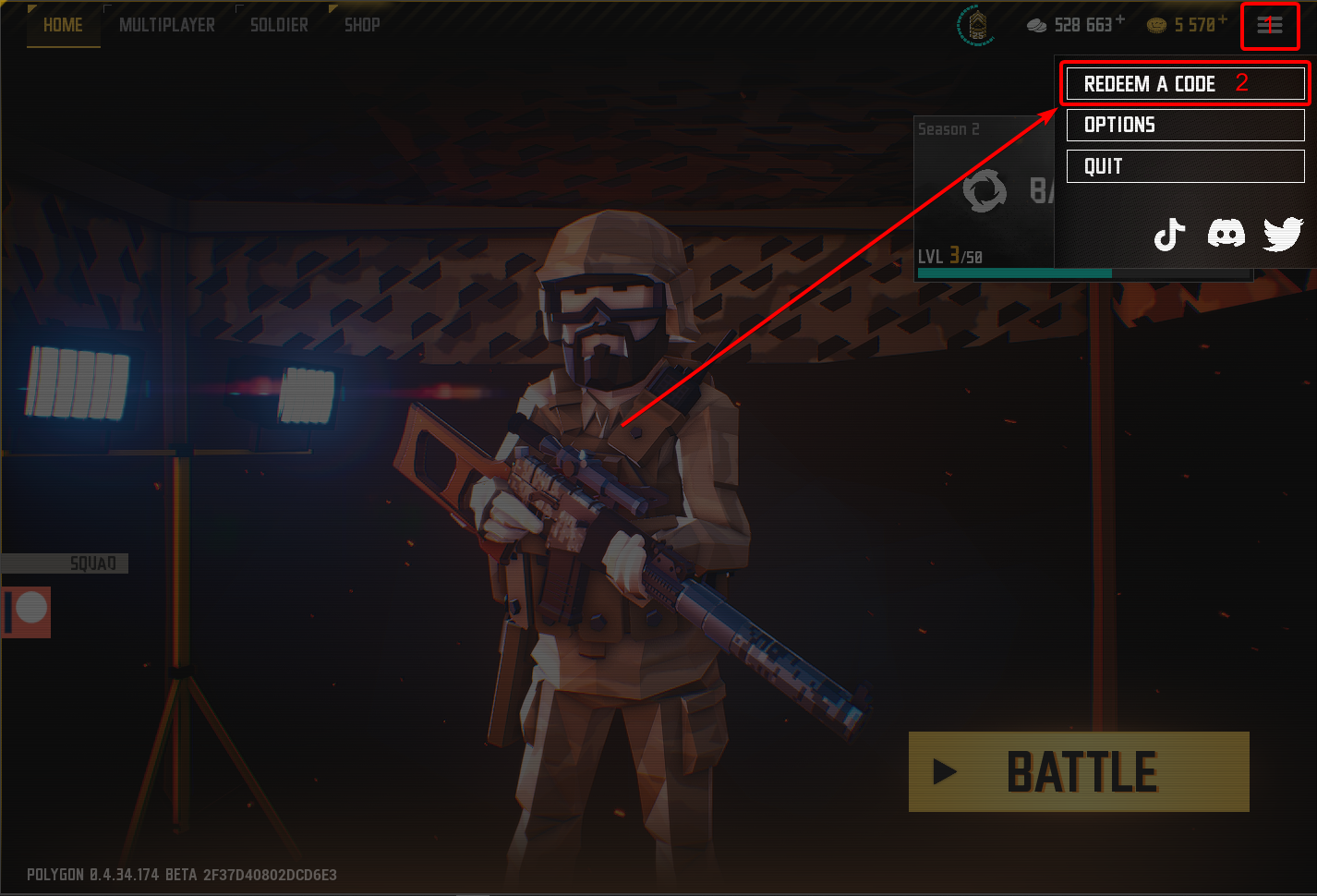 To redeem a code just click the three lines in the top right of the main menu and press "Redeem A Code".
