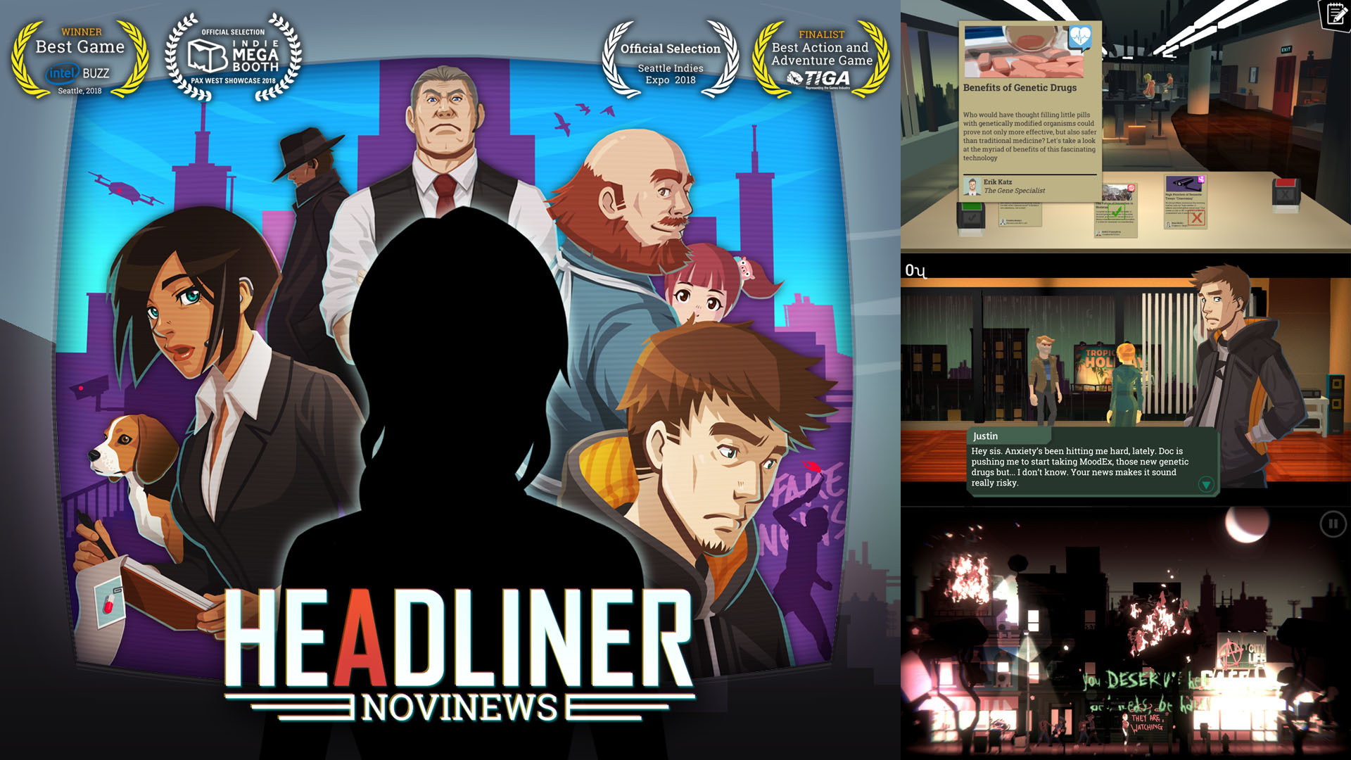 Headliner: NoviNews is a "Papers, Please meets Oxenfree meets visual novel" where YOU are a news editor. Decide which articles to publish and watch as the city changes day by day. Shape the lives of four main characters through media. Before you start you can see the previous player’s ending, and share your own story at the end.